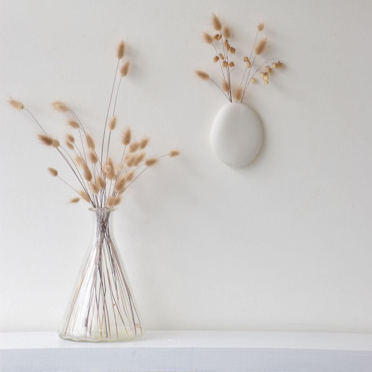 Uma simples jarra em porcelana para aplicar na parede feita a partir de moldes de uma pedra verdadeira. Feita à mão em porcelana polida branca mate (sem vidrado).
